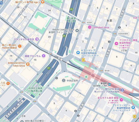 銀座ブロッサムそば、東銀座駅、銀座一丁目駅も利用可