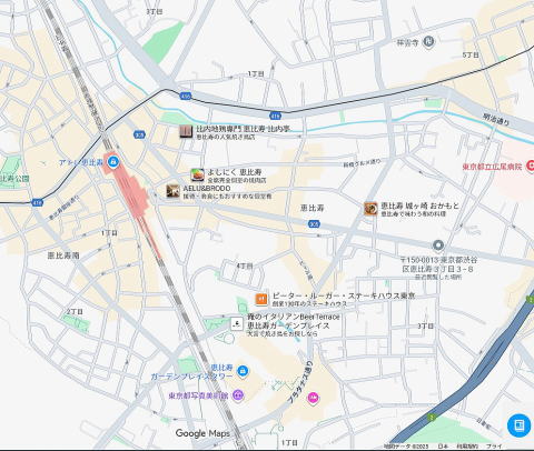 恵比寿東口より直進、恵比寿社会教育会館近く