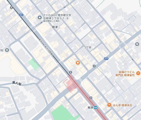 根津観音通り商店街内、根津小学校入口信号近く