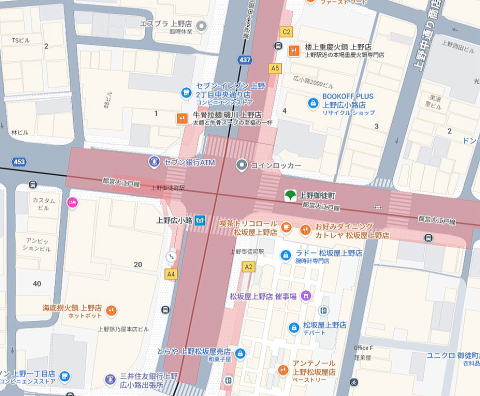 春日通り角地、上野広小路信号近く