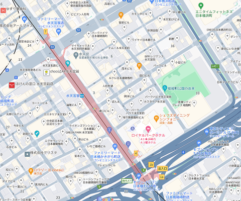 水天宮近く、ロイヤルパークホテル近く、角地