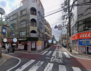 西口商店街入る碑文谷公園通り