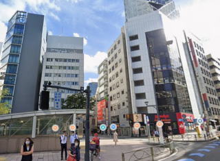駅至近、青山通り・エスプラナード通り角地、視認性良好