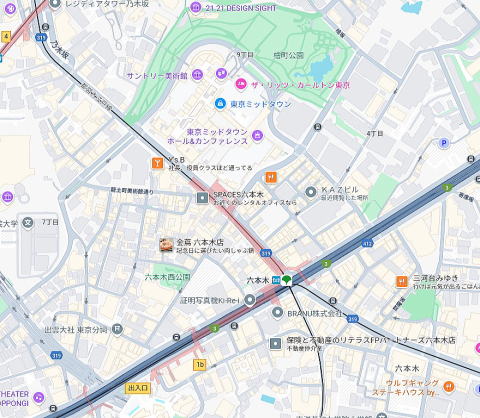 六本木ミッドタウン近く角地、麻布警察署前信号近く