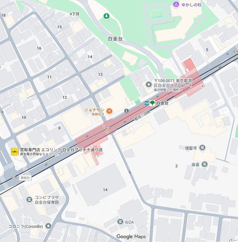 駅至近、目黒通り、東大医科学研究所付属病院近く