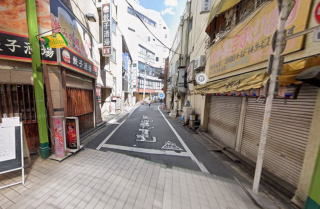 ピーポー通り、飲食店の並ぶミルパ商店街沿い