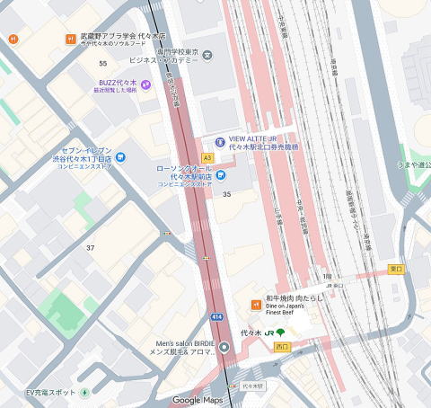 駅至近、代々木駅前通り、周辺飲食多数