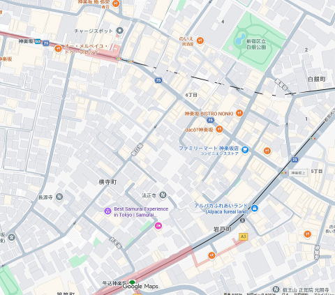 駅至近、神楽坂商店街、神楽坂上交差点近く