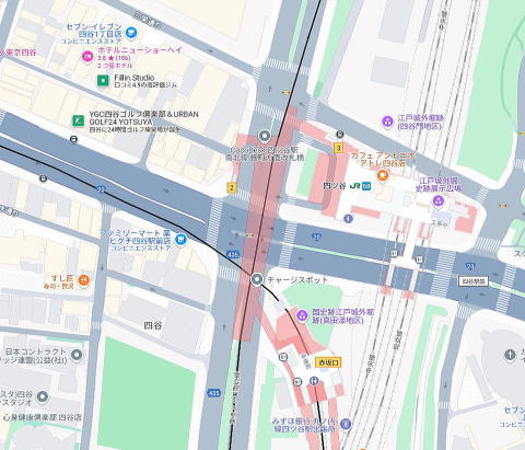 駅至近、新宿通り、四谷見附交差点近く
