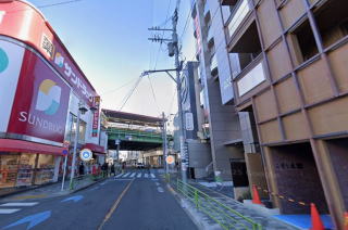 駅南口近く、商店街、駅入口交差点前