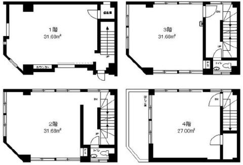 階数・面積 1-4階(1-3階各9.58坪 4階8.17坪)