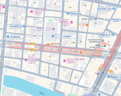 浅草橋西口至近、左衛門橋通り近く