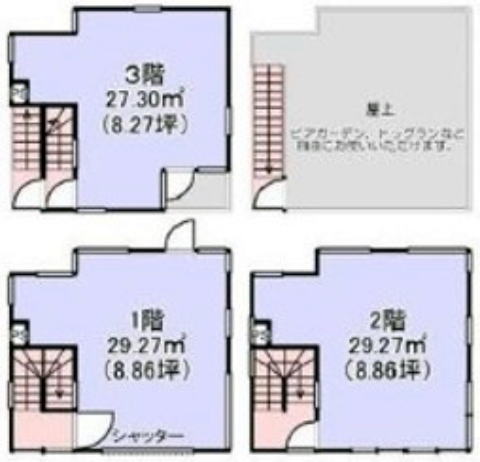 階数・面積 1階 8.86坪、2階 8.86坪、3階 8.27坪