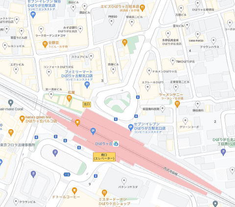 駅至近、北口、ロータリー入る、ひばりが丘北通り路地