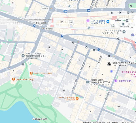駅至近、吉祥寺通り、井の頭公園近く