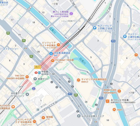 目黒川桜並木そば、日の出橋渡りすぐ