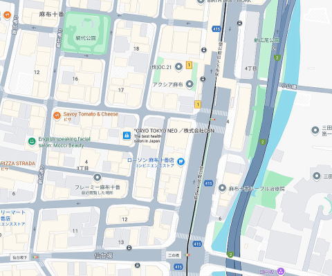 麻布通り西側、飲食店の集まるエリアの路地沿いの飲食ビル