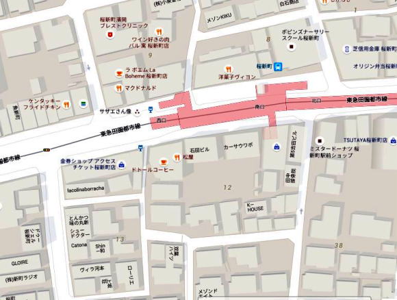 桜新町 西口正面の好立地、近隣に、松屋、マクドナルド、KFC等飲食店多数