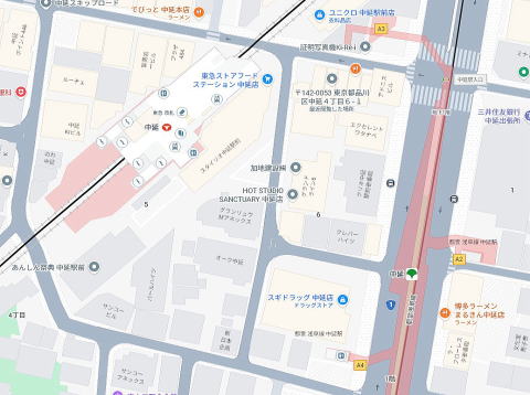 東急出口2至近、中延駅前商店街内